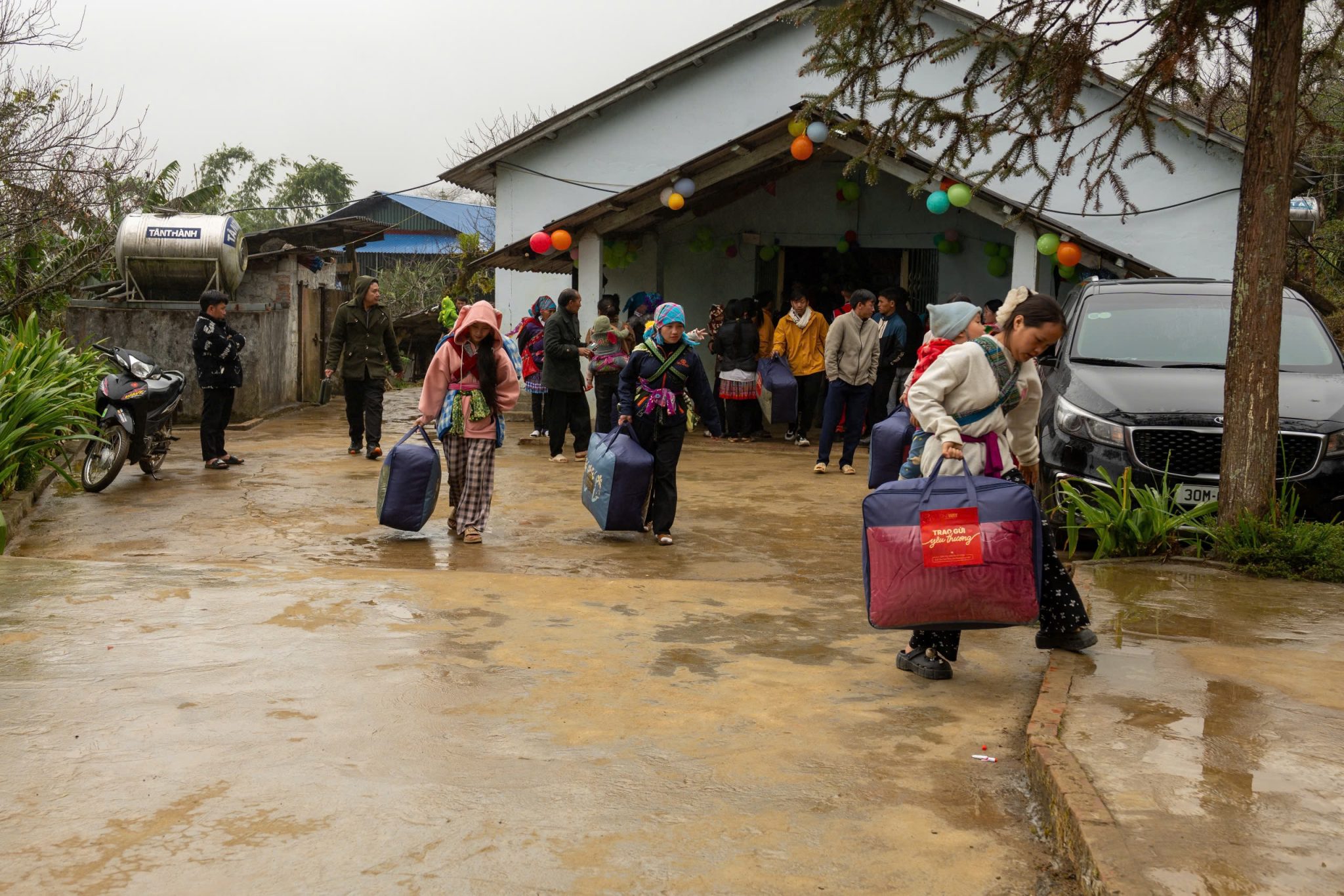 Cụ bà Lý Thị Dí kéo chúng tôi lại, nắm chặt tay và nói những lời ấy bằng tiếng Mông vì bà không biết tiếng Kinh. Qua người phiên dịch, bà tiếp lời: “Cảm ơn Chúa, cảm ơn anh chị em trong đoàn đã lên thăm và trao quà cho bà con. Đây là lần đầu tiên bà được nhận quà như thế này, vui lắm, đẹp lắm.”