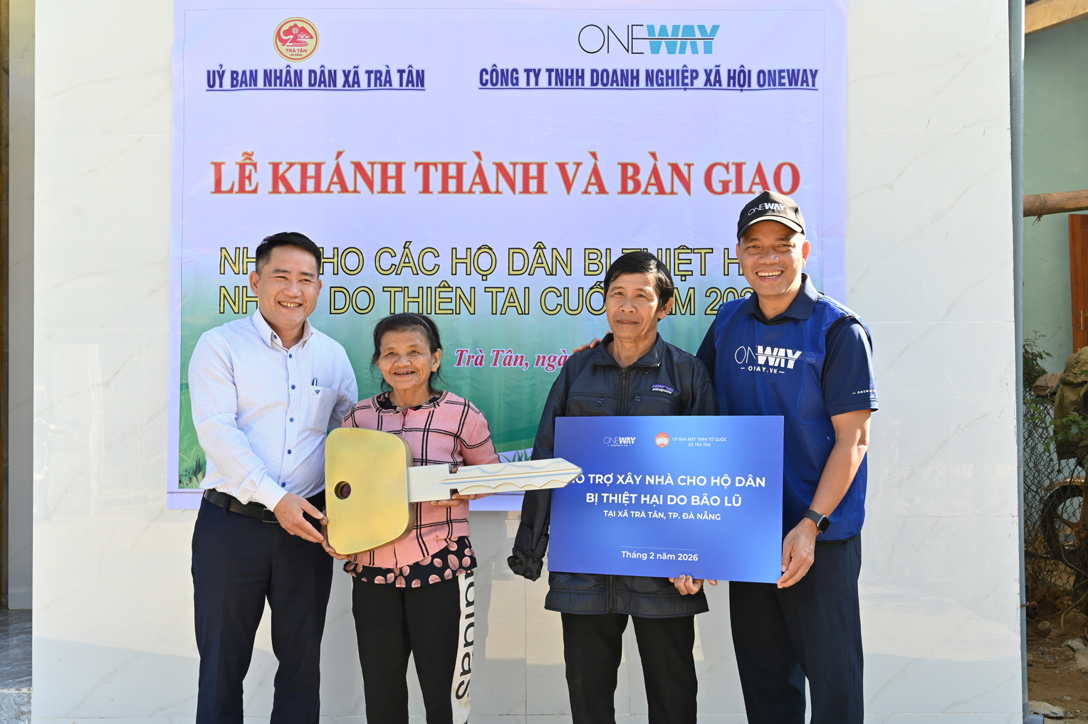Trước đó một ngày (12/2), tại Thu Bồng Sơn (Quảng Nam), Mục vụ Oneway phối hợp cùng Hội Liên hiệp Phụ nữ xã Thu Bồn trao nhà cho gia đình chị Nguyễn Thị Hai (thôn A Đông). Gia đình chị thuộc diện đặc biệt khó khăn: chồng mắc ung thư phổi giai đoạn 3 mất khả năng lao động; con gái thứ hai thiểu năng trí tuệ, bị kẻ xấu lợi dụng sinh 3 con; bản thân chị tuổi cao, sức yếu nhưng là lao động chính chăm sóc gia đình và hai cháu nhỏ đang đi học. Được bước vào ngôi nhà mới trước Tết, gia đình chị xúc động nắm chặt tay chúng tôi gửi lời cảm ơn đầy thân tình.