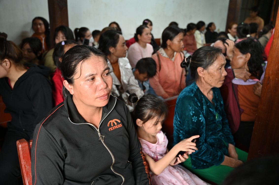Giữa dòng người nhận quà, chúng tôi có thời gian đươc tâm tình cùng chị Hồ Thị Xiêm (1992). Chị là mẹ đơn thân, đang nuôi con trai học lớp 3. Chị mắc bệnh hư thận, phải xuống bệnh viện Tam Kỳ cách nhà 60km thăm khám định kỳ. Muốn ghép thận, nhưng chi phí vượt quá khả năng. Ngày khỏe, chị đi làm thuê nương rẫy vài hôm, rồi lại phải truyền nước. Hai mẹ con mới chuyển về quê, chưa có nhà ổn định. Hội Thánh giúp chị dựng tạm khung sắt, chị vay mượn thêm để xây tường và hiện còn nợ 35 triệu đồng. Nhận phần quà Tết, chị nói: “Nhận được quà Tết chị vui lắm, đỡ cực, đỡ tốn kém hơn. Cảm ơn Chúa lắm!” Món quà không lớn, nhưng với chị là sự khích lệ giữa chuỗi ngày chống chọi bệnh tật, nợ nần và cô đơn.