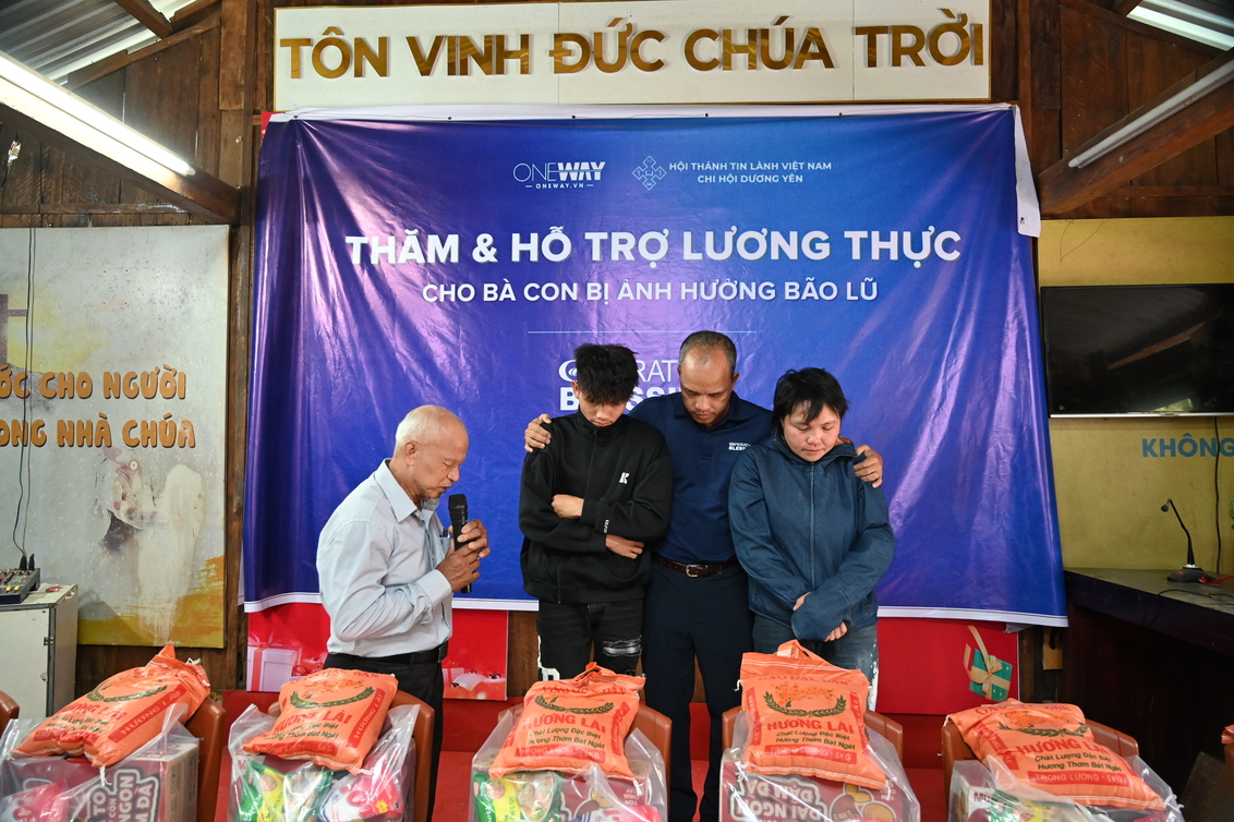 Chúng tôi cũng gặp lại cô Dương Thị Hương (1968). Trong đợt cứu trợ trước, khi tình cờ ghé ngang Điểm nhóm, cô được nghe chia sẻ Phúc Âm và tin nhận Chúa. Từ đó đến nay, cô trung tín nhóm lại. Lần này, niềm vui càng lớn khi có thêm hai người bằng lòng tiếp nhận Chúa.