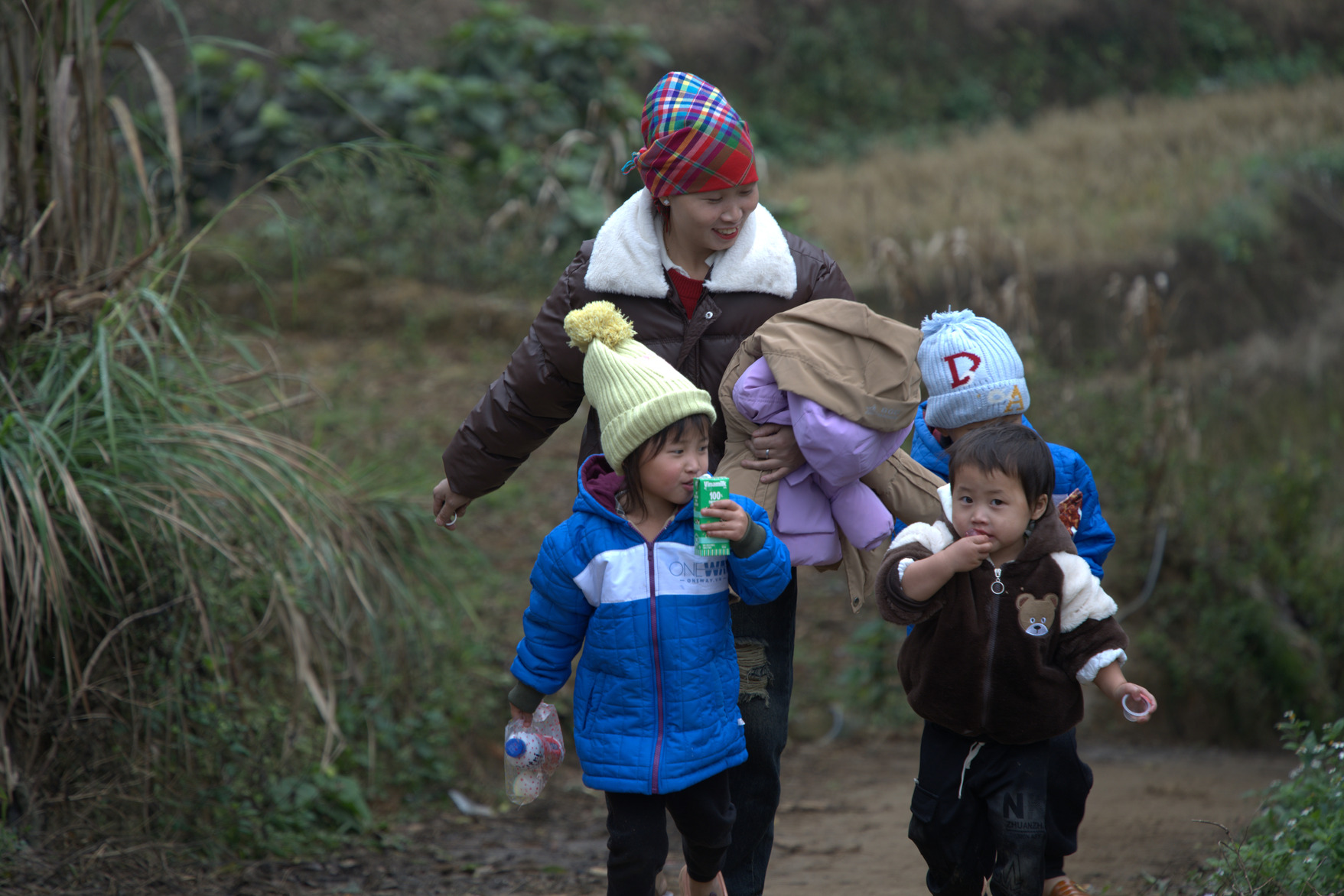 Ghé về bản xứ thăm các em, tiếng cười trẻ thơ vang lên giòn tan. Cái lạnh buốt cũng không ngăn được bước chân các em tập trung lại và ngội nghe chúng tôi kể những câu chuyện Kinh Thánh, cùng hát ngợi khen Chúa, cùng vui chơi và nhận những món quà ấm áp.