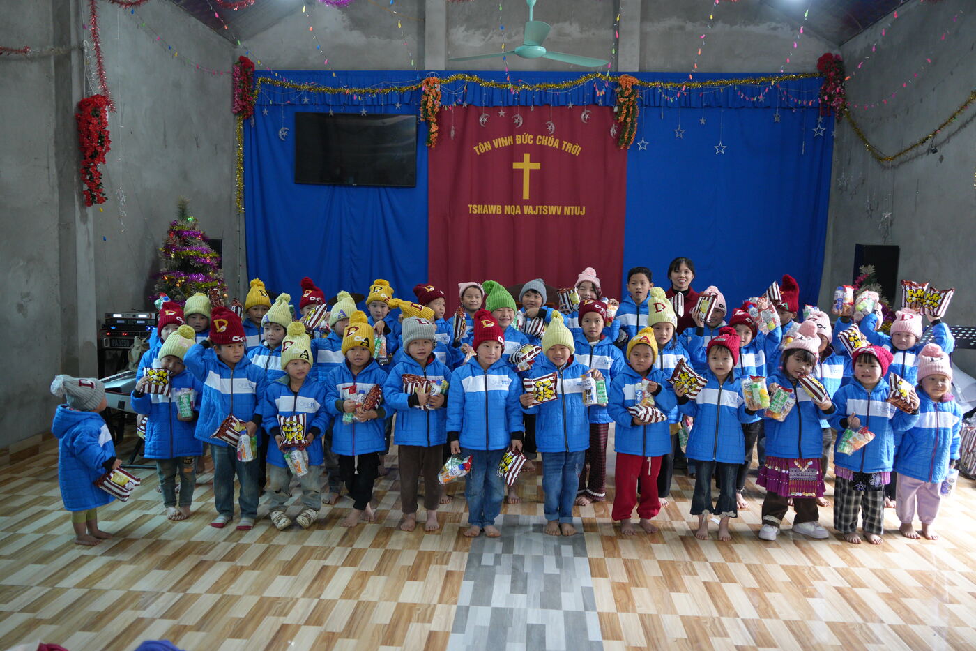 Vẫn ánh mắt ấy, vẫn nụ cười ấy. Giữa cái lạnh 10 độ của những ngày nghỉ Tết, các em thiếu nhi tại 10 Hội Thánh thuộc khu vực tỉnh Lào Cai (cũ) rạng rỡ khi Oneway đến thăm, mang theo những chiếc áo ấm, mũ len và cùng những phần quà bánh để trao cho hơn 300 em nhỏ, trong hai ngày 11–12/2 vừa qua.
