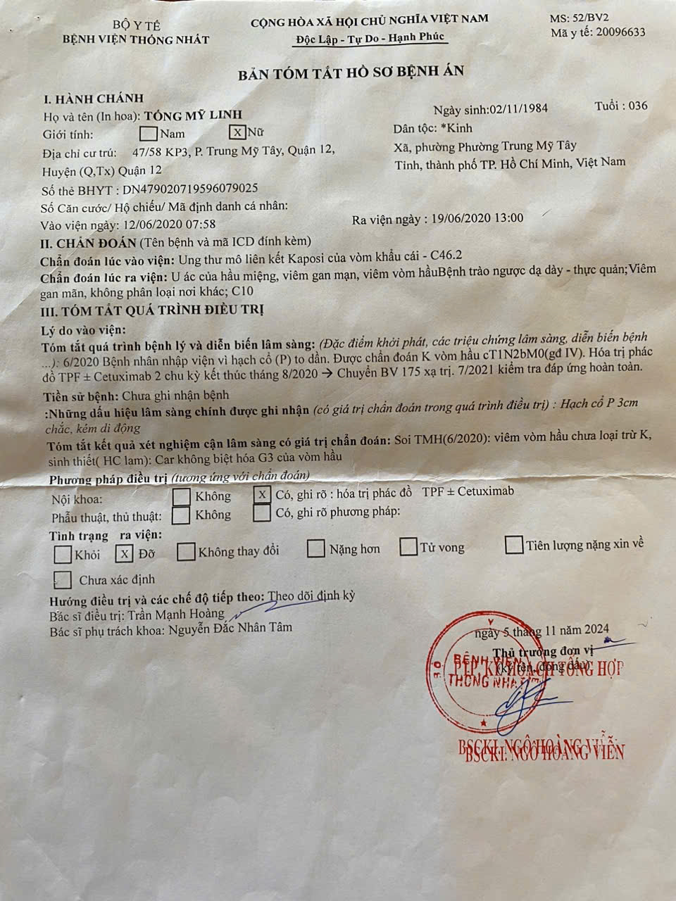 Khi hai con dần lớn lên, cuộc sống cũng bắt đầu ổn định hơn, chị nghĩ rằng mọi khó khăn đã ở lại phía sau. Nhưng đúng vào lúc đó, những dấu hiệu bất thường xuất hiện. Chị thường xuyên bị ù tai, khàn tiếng và ho kéo dài không dứt. Ban đầu chỉ là một hạch viêm ở cổ, nhưng khi đến khám chuyên sâu tại Bệnh viện Ung Bướu TP. Hồ Chí Minh, chị nhận được kết quả khiến cả cuộc đời như sụp đổ: ung thư vòm họng giai đoạn cuối. Theo hồ sơ bệnh án, chị được chẩn đoán ở giai đoạn IV, với hạch cổ đã lan rộng.