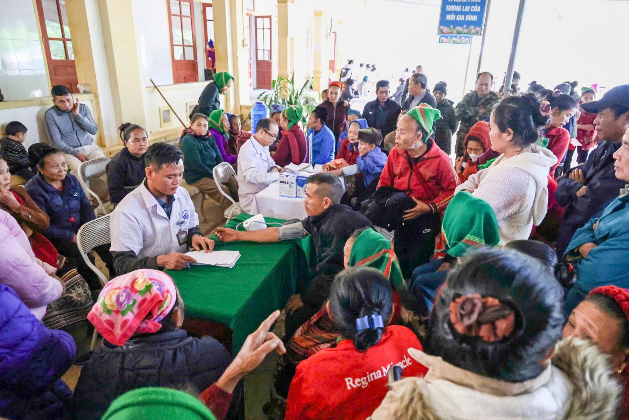 Đội ngũ y tế của Oneway và trạm y tế xã Nhôn Mai làm việc liên tục để gần 300 lượt người được đo huyết áp, kiểm tra sức khỏe, tư vấn và nhận thuốc.